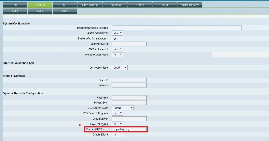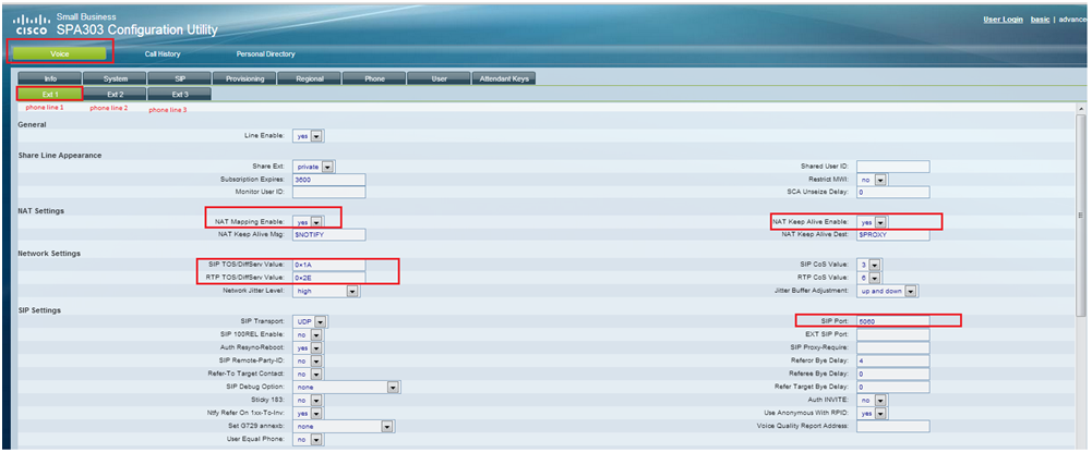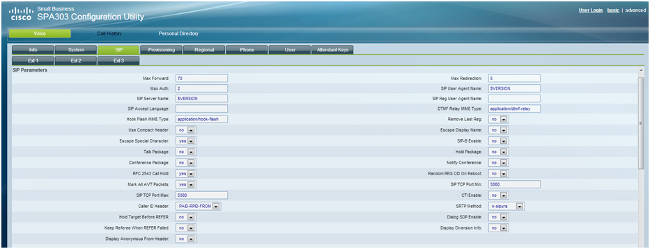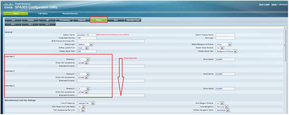 Configure each of your Lines by clicking on the ‘Ext1′, ‘Ext2’, ’Ext3’, ‘Ext4’ tabs