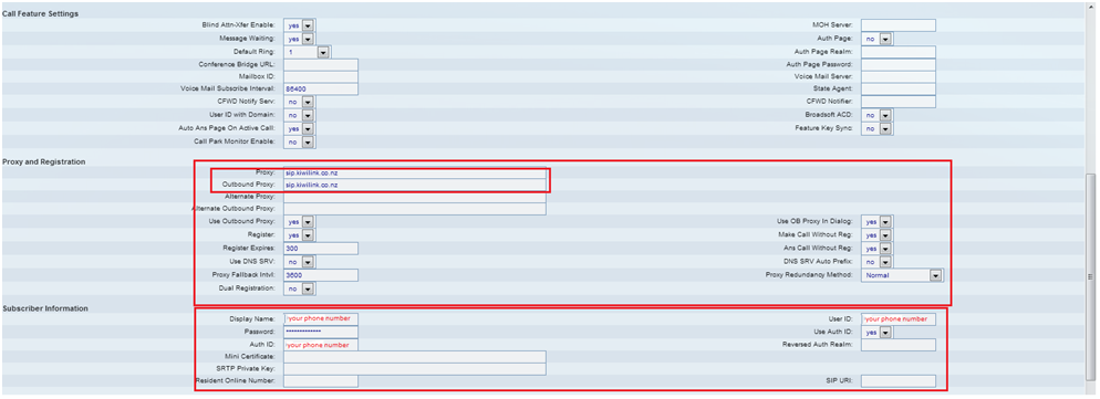 3. Configuring SPA 303 to work with Kiwi Internet Settings: