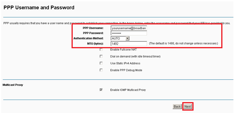 9. Match the settings with the below, replacing the username and password with your credentials.