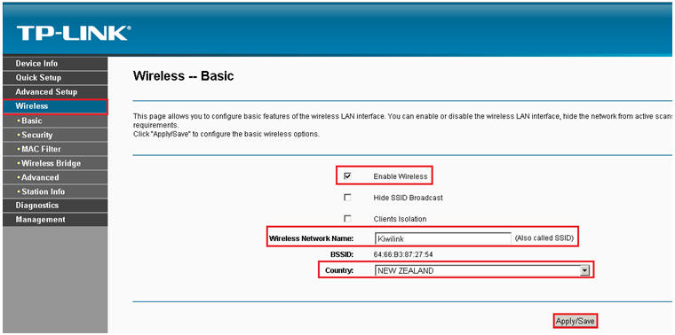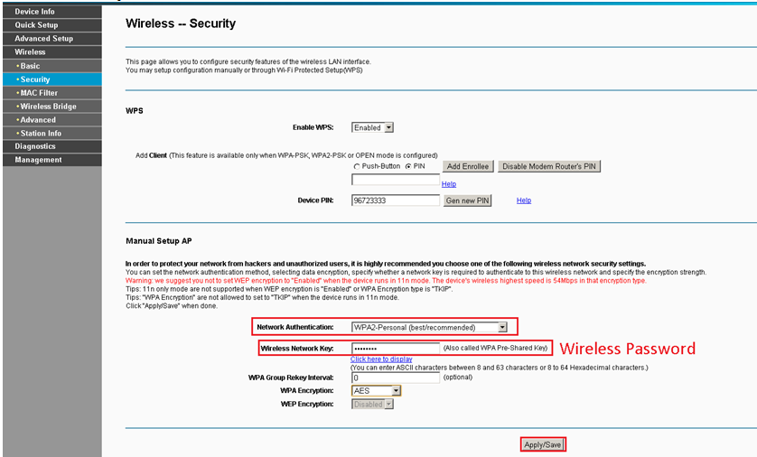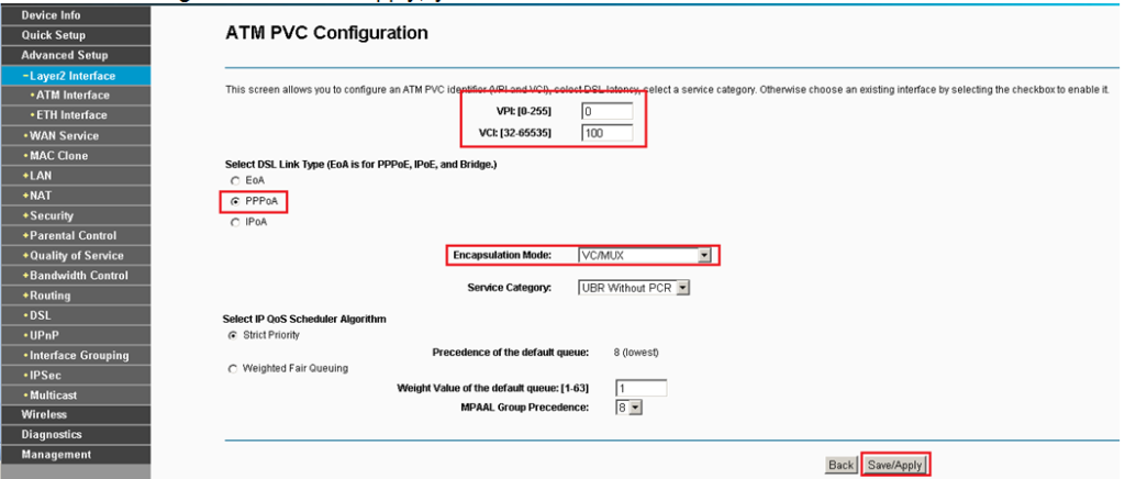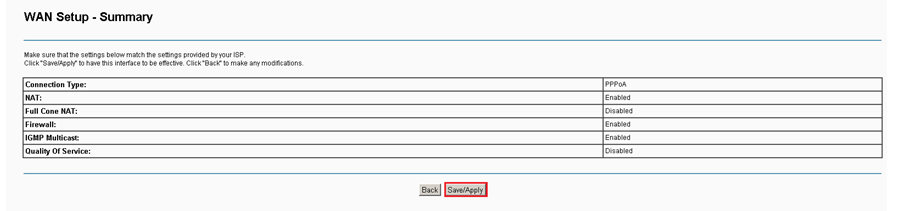 5.2. Enter the following and click Save/Apply, you will be taken to another screen to confirm.​