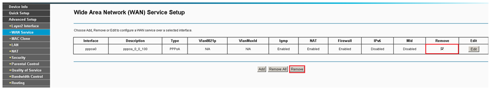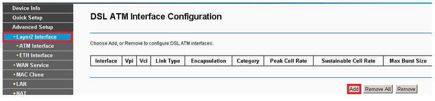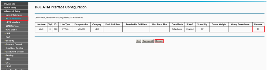 5.  Select ATM Interface from the sidebar and also remove it.​